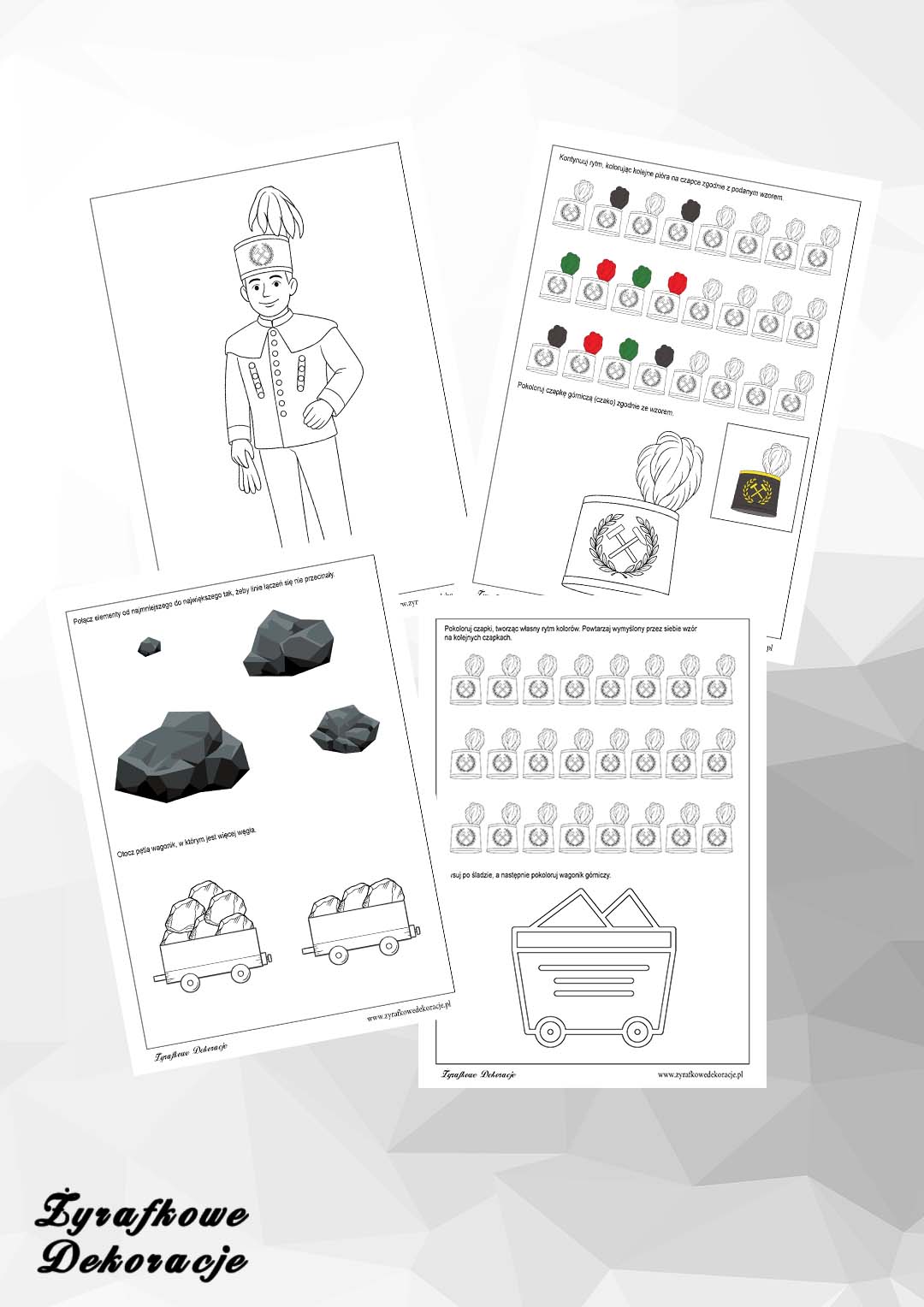 - kolorowanie czapki górniczej zgodnie ze wzorem,